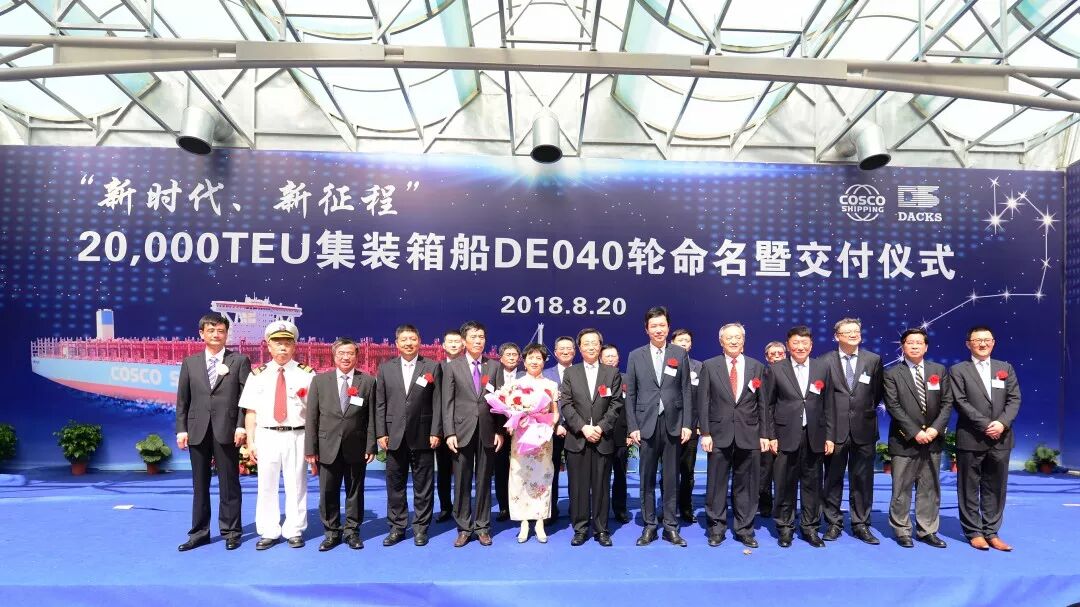 8月20日,大连中远海运川崎船舶工程有限公司为中远海运集装箱运输有限公司建造的20000TEU级集装箱船“中远海运天蝎座”轮命名交付。