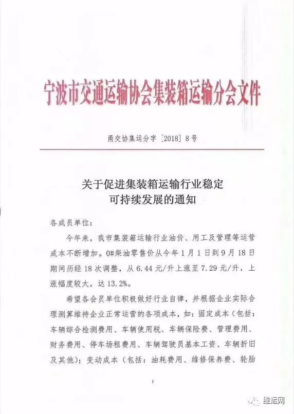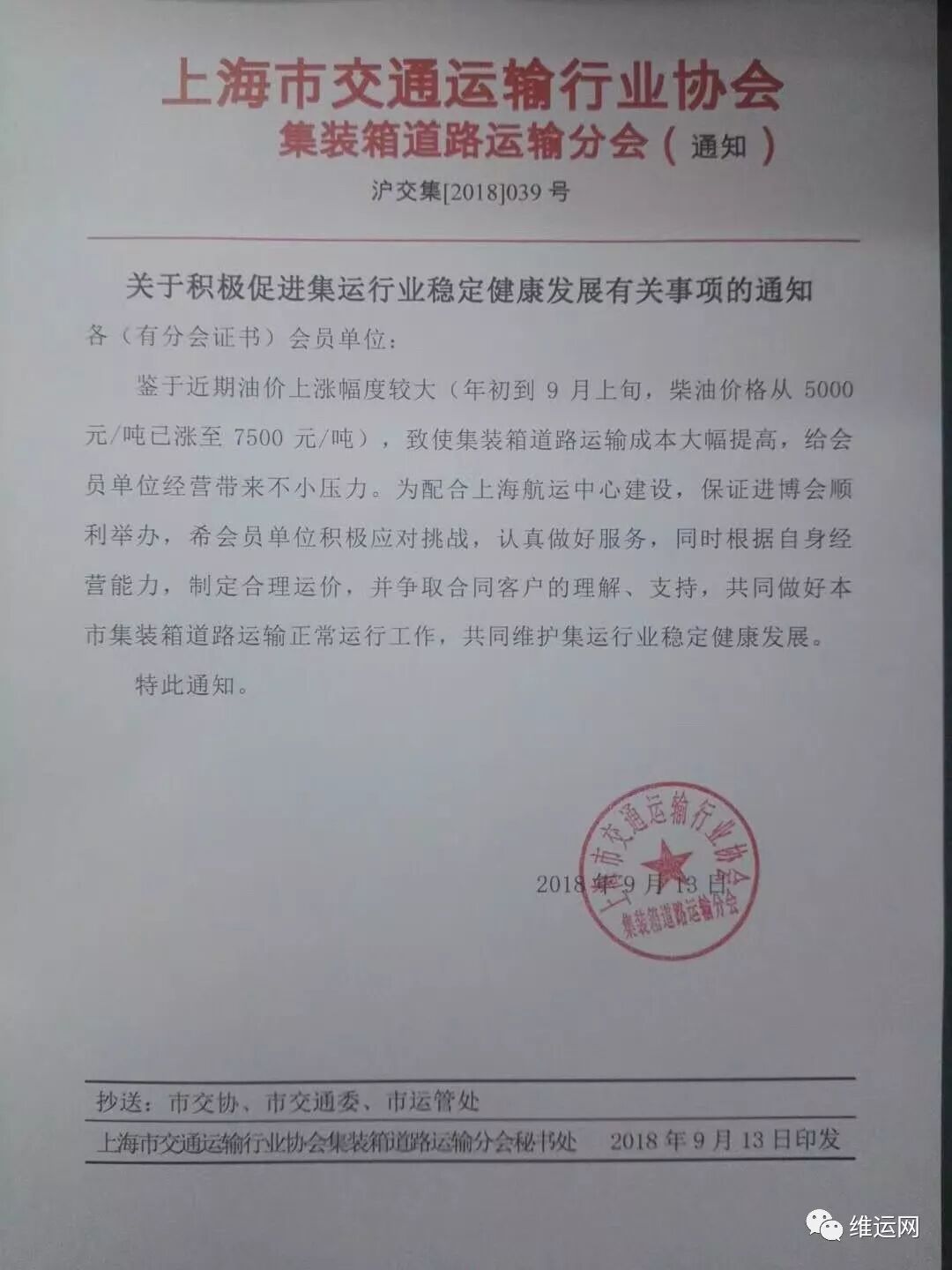 文章来源:上海、宁波、深圳集装箱运输协会通知,维运网整理汇编转载请注明